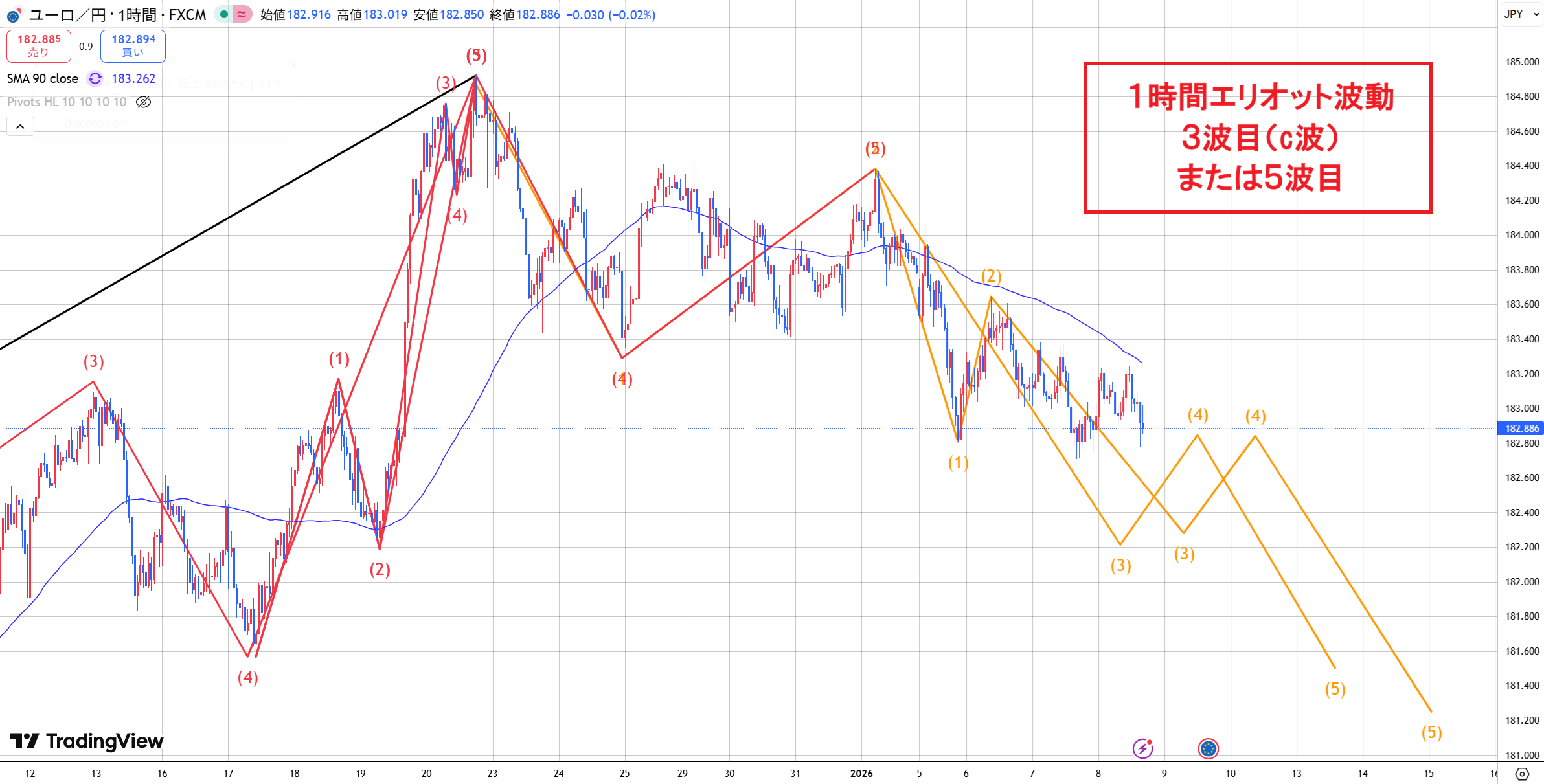 相場解説 【ユーロ円 日足・4時間のエリオット波動が鍵】 こんにちは♪ 今日はユーロ円相場分析をしていきます。 【ユーロ円】 メジャー(日足)サイクル 44日目 4Hサイクル 80本目 または42本目 ユー... 2026年1月6日