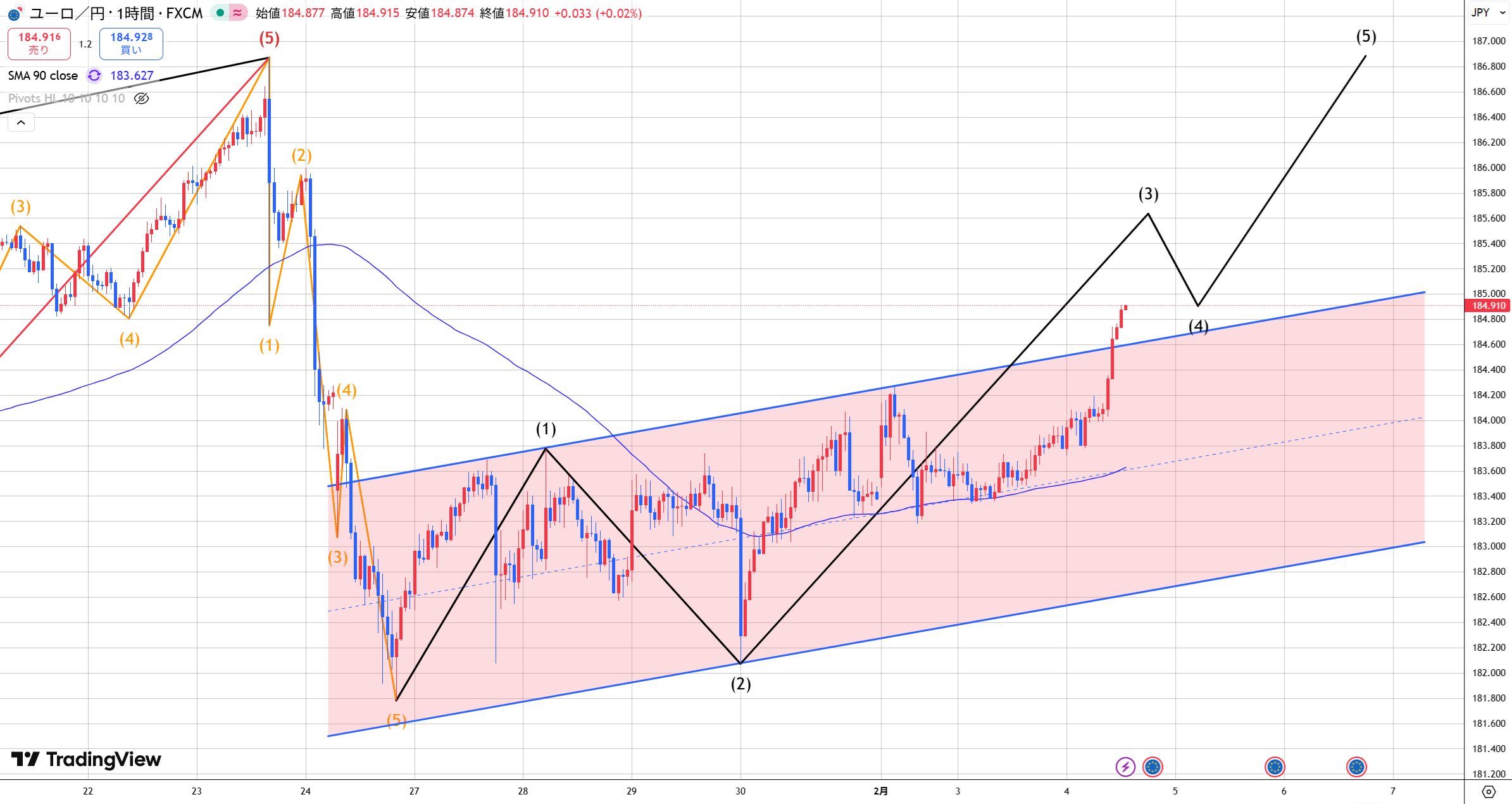 ユーロ円 【ユーロ円 買いは続行!185.53越えがセオリー】 こんにちは♪ 今日はユーロ円相場分析をしていきます。 【ユーロ円】 メジャー(日足)サイクル 9日目 4Hサイクル 52本目 ユーロ円1時間チャート ... 2026年1月21日