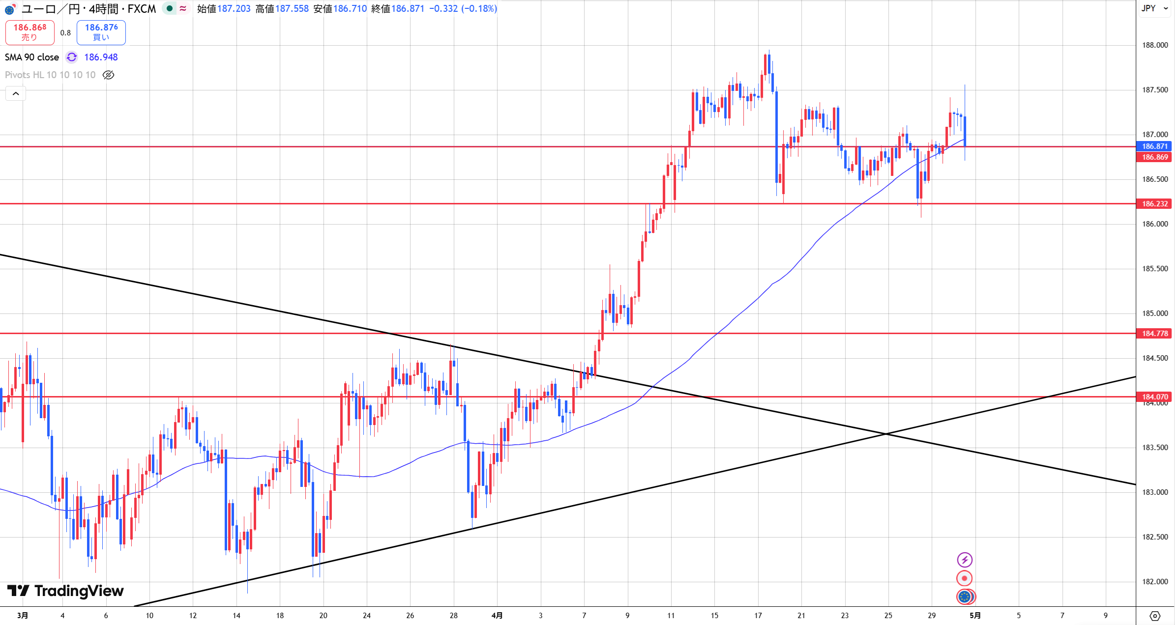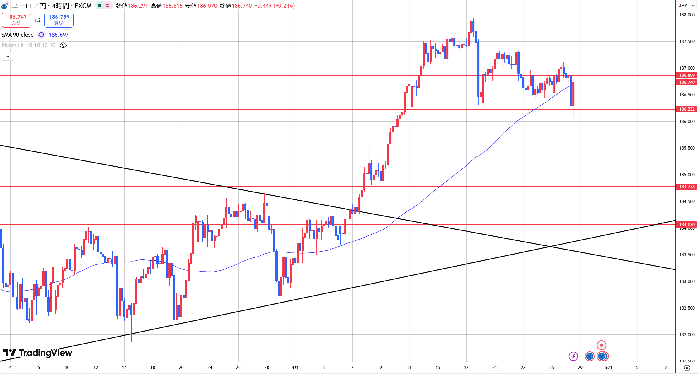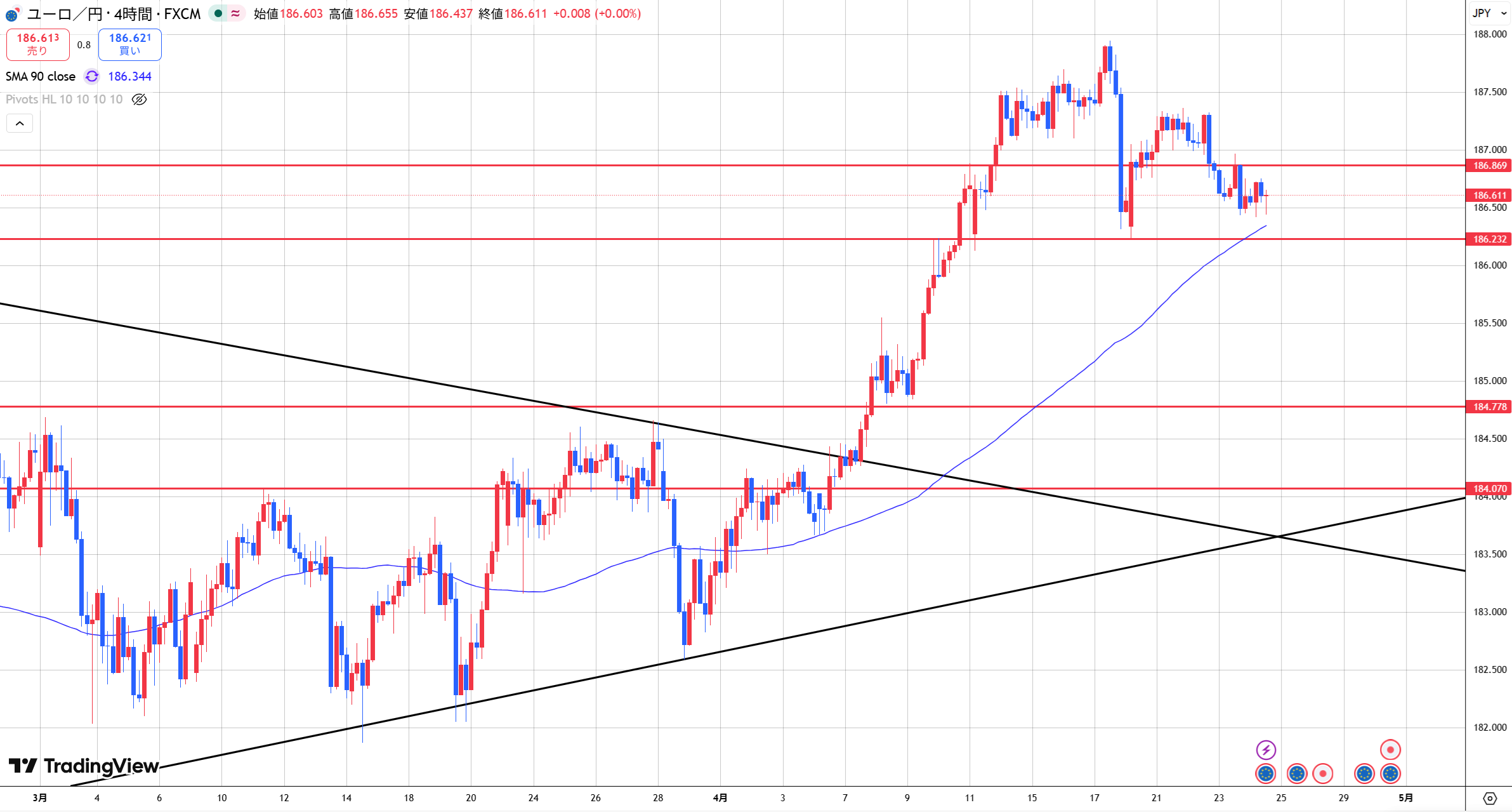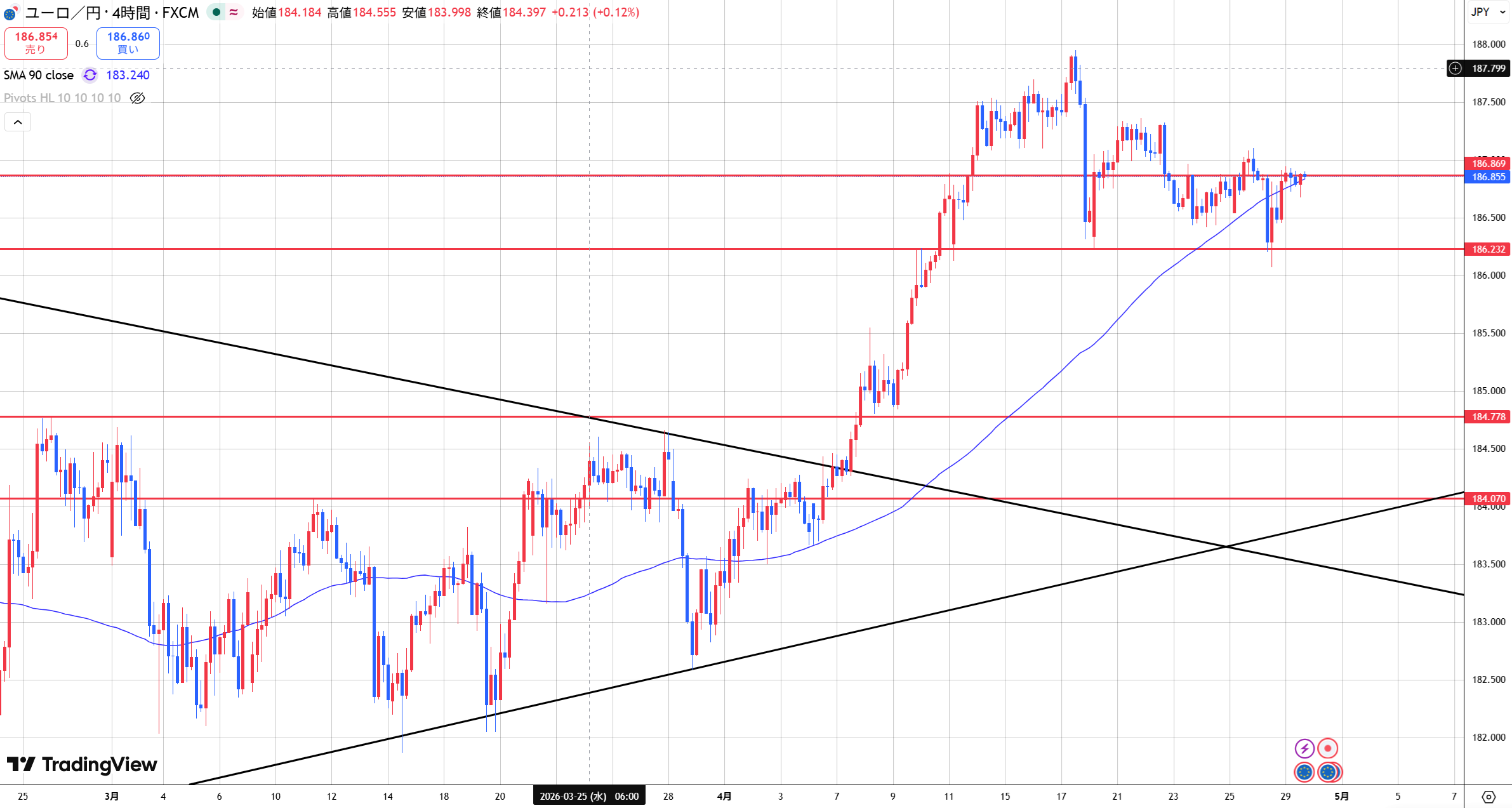 ユーロ円 【ユーロ円 186.86越えで止まらない円安相場!】 こんにちは♪ 今日はユーロ円相場分析をしていきます。 【ユーロ円】 メジャー(日足)サイクル 46日目 4Hサイクル 78本目 ユーロ円4時間チャート ... 2026年4月16日