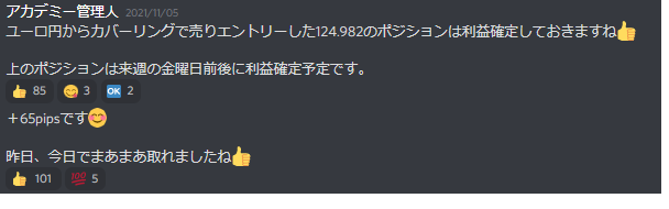 このように配信はいつエントリーをしたのか、損切ラインの設定、そしてエントリーの根拠、理由についてもすべて配信していきます。