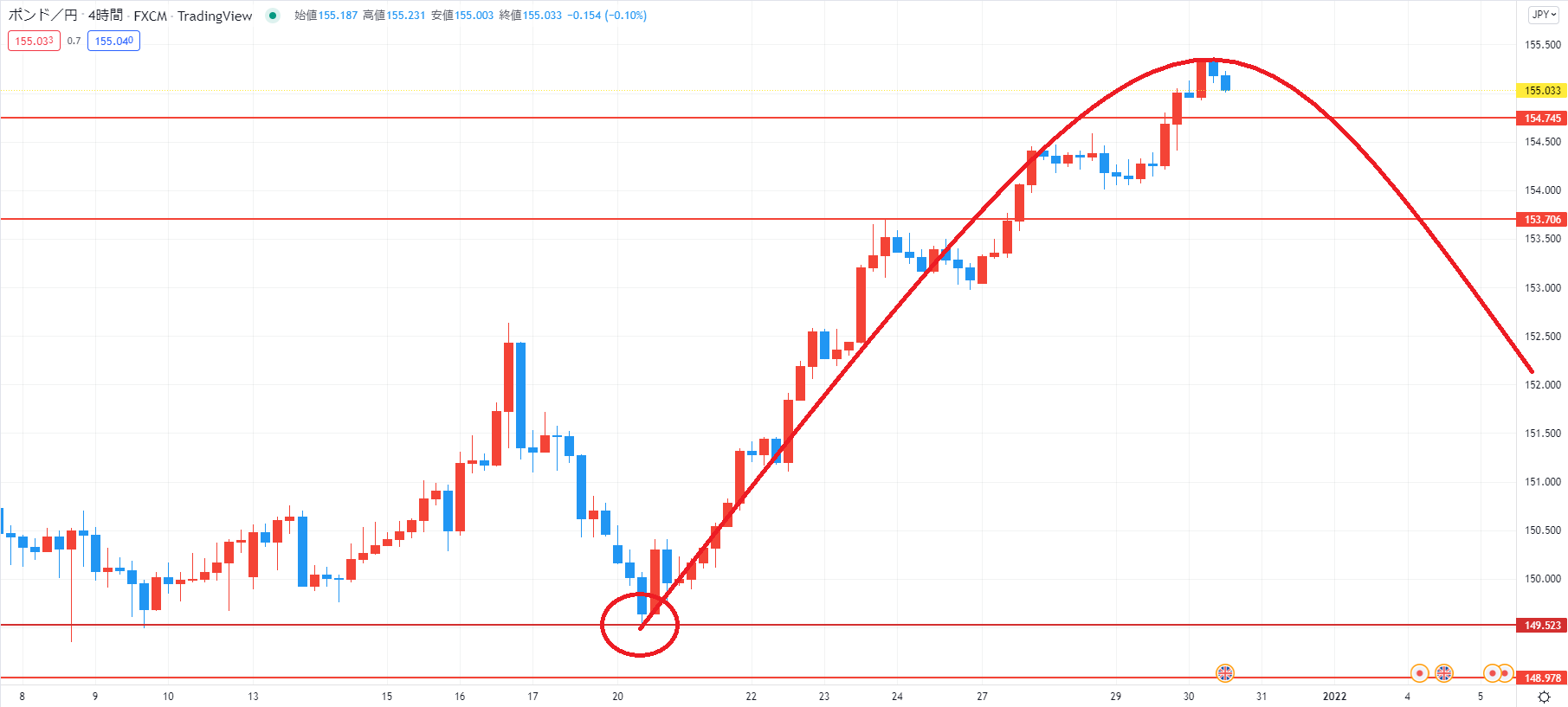 但し、木曜日はトレンドのまま動きやすいので、金曜日に高値更新で下落の可能性もあります。