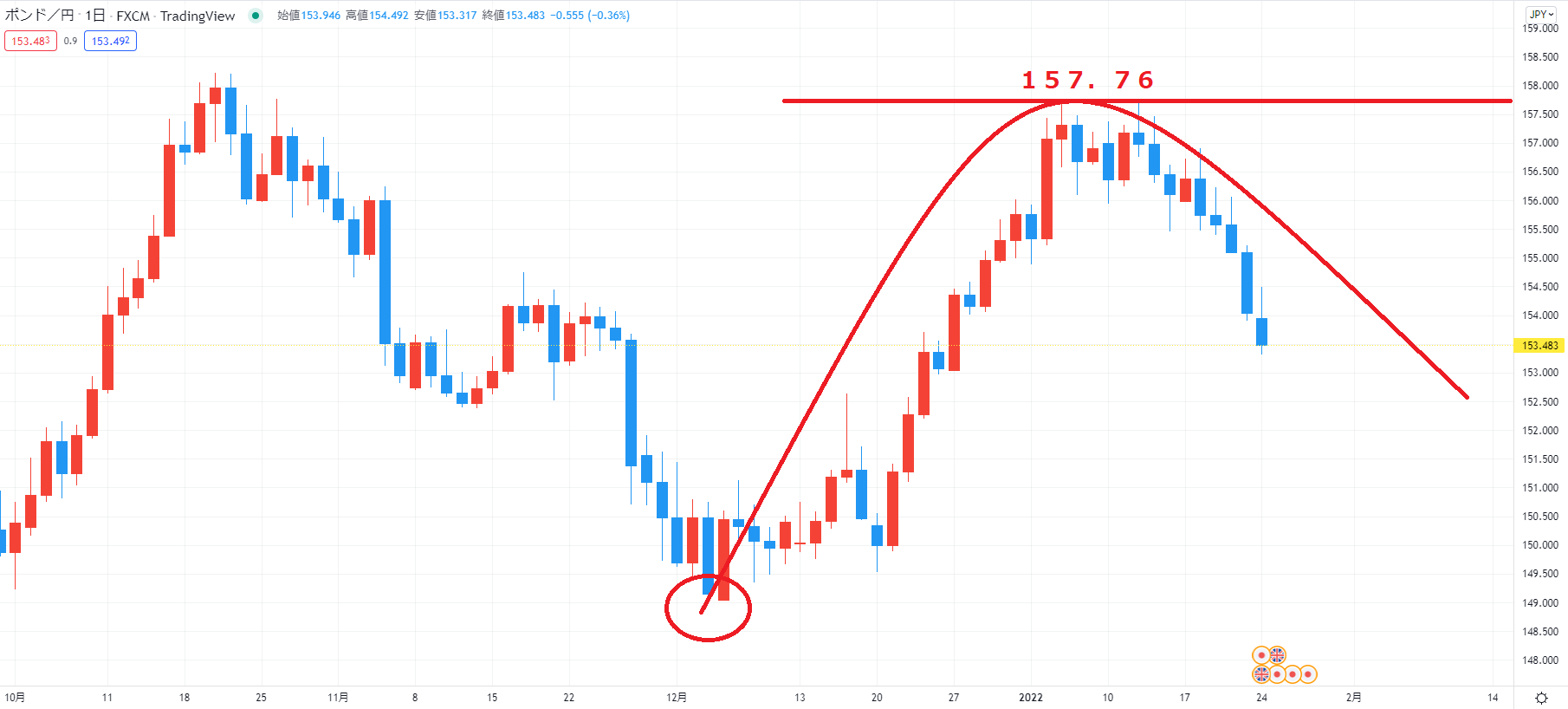 ポンド円日足チャートです。