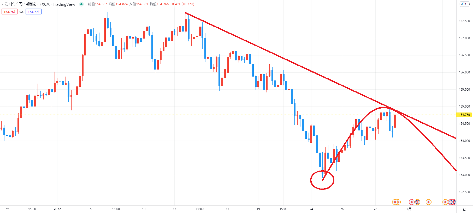 ポンド円日足チャートです。
