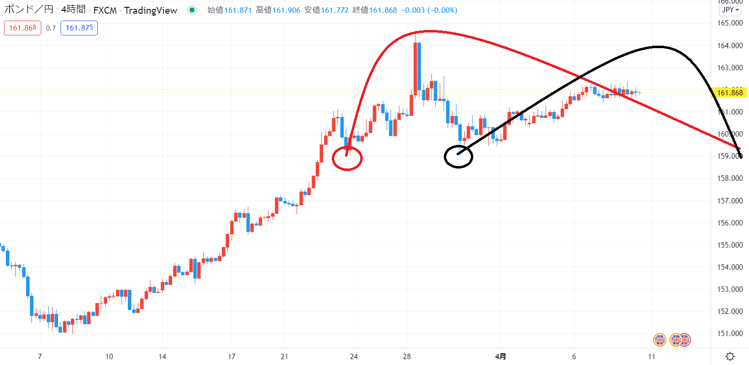 そして、金曜日、月曜日は反転しやすい時間帯ですので、再び下落方向へ向かう可能性もあります。