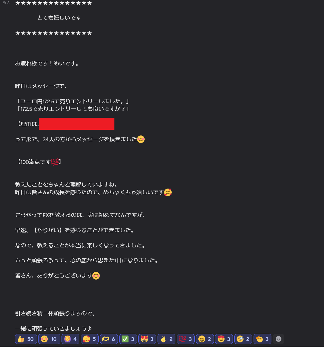 サロン生には出来るだけリスクコントロールを教え資金が減りにくく、そして増えやすい状況を作ることを心掛けています。