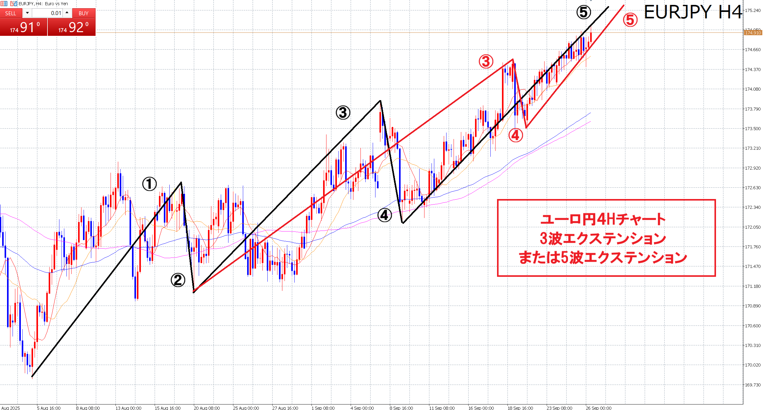 メジャーサイクル後半戦、日足エリオット5波目、4Hサイクル後半戦、4Hエリオット5波目、という事を踏まえると、引き続き天井は近いと思っています。