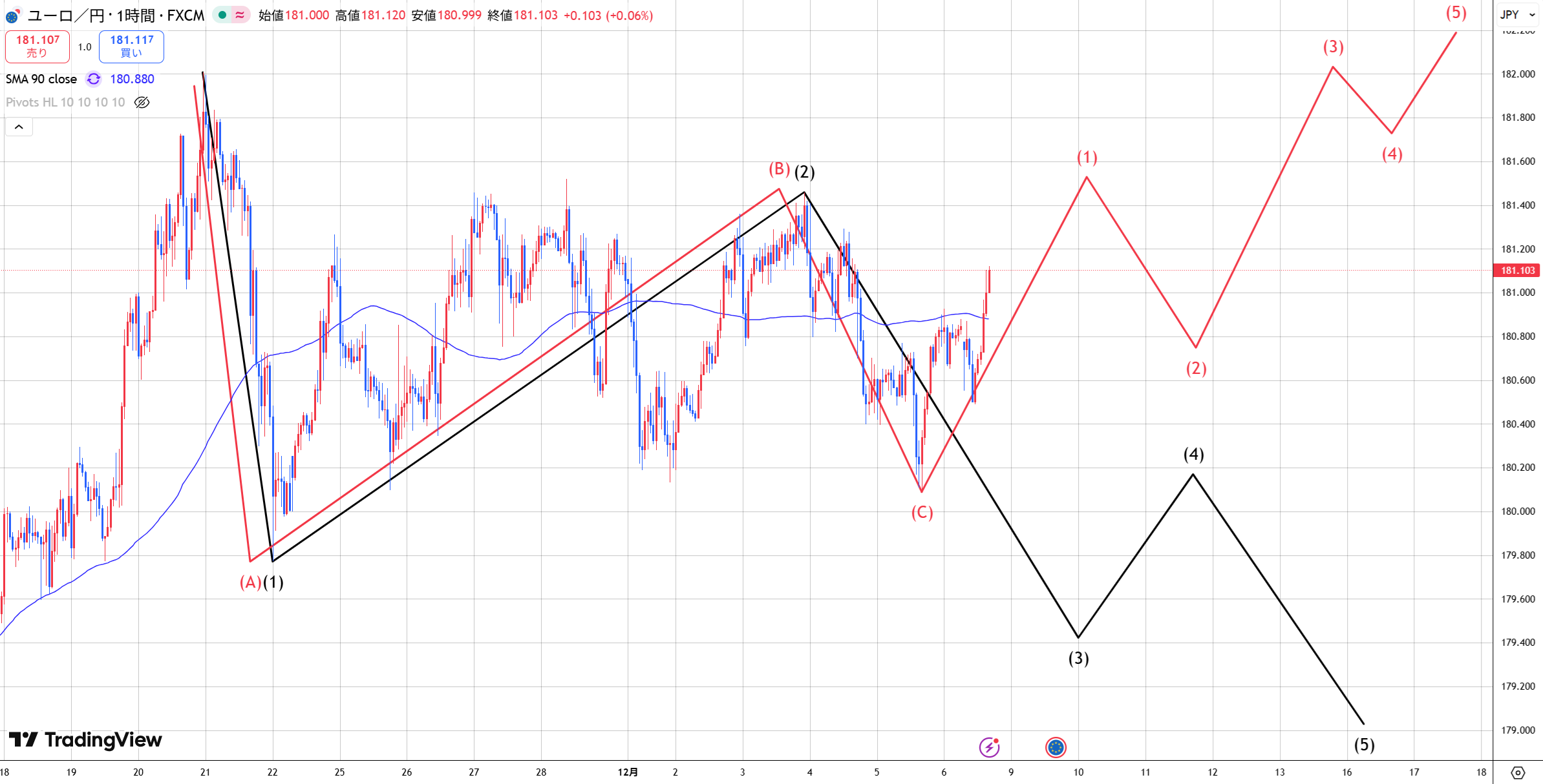 ユーロ円は日足5波、4時間5波終了の可能性に繋げています。